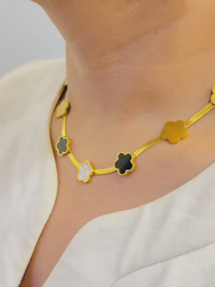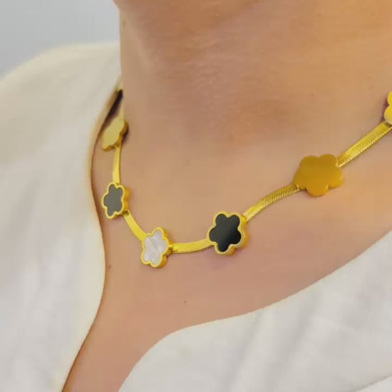 Black & White Clover Pendant Necklace