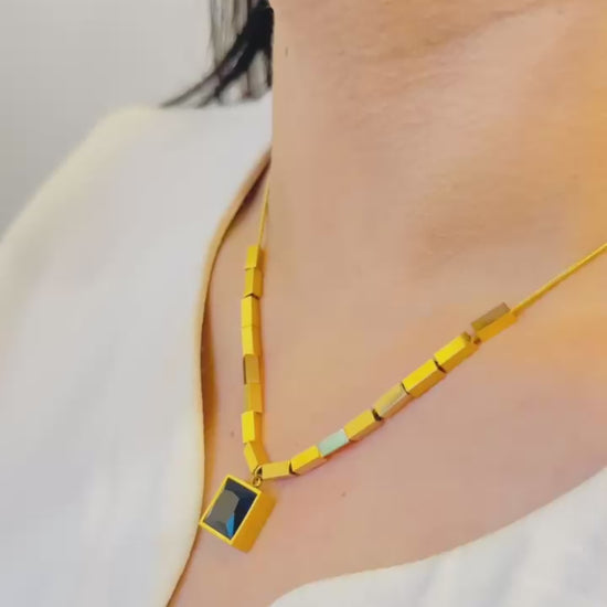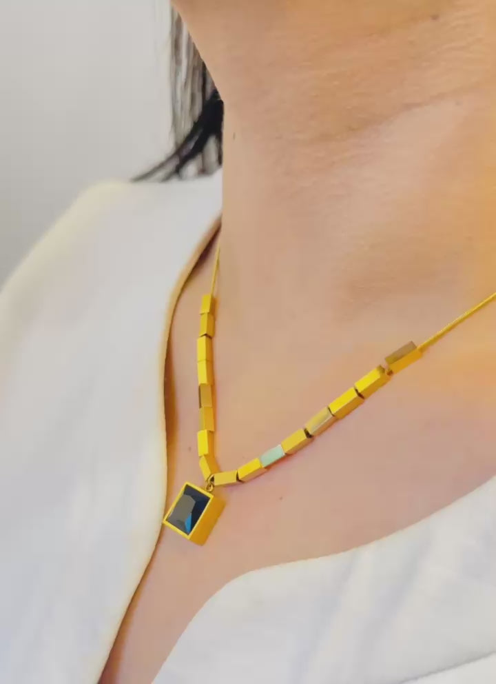 Gold-Plated Geometric Blue Stone Pendant Necklace