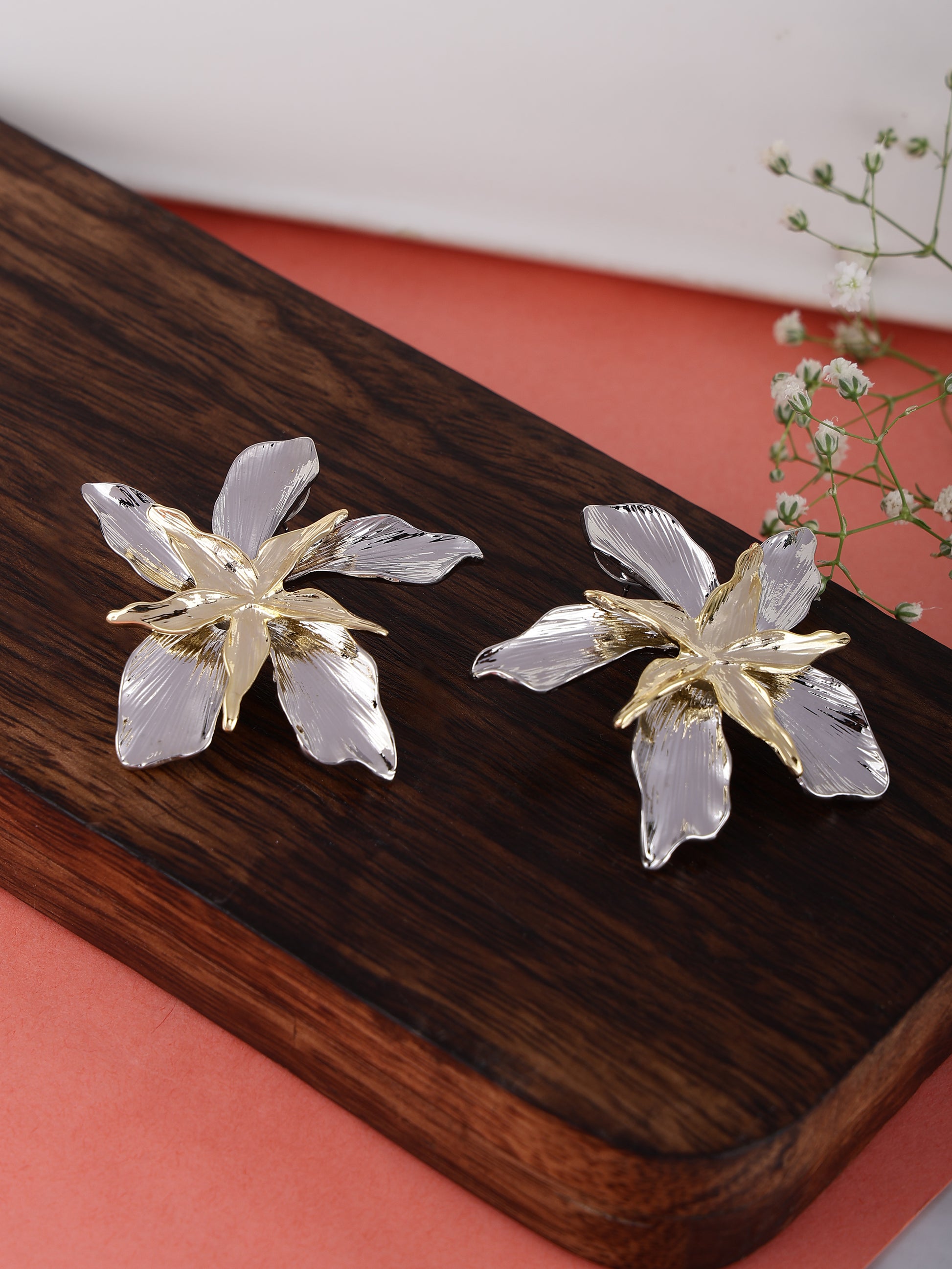 Gold & Silver Flower Earrings